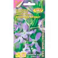 Однолетник Высота растения 50 см Диаметр цветка 2 см. Самое популярное растение! Всё лето по вечерам маттиола открывает свои лилово-розовые цветки, наполняя атмосферу сада сладким чарующим ароматом. Она отлично подойдёт для посадки в любом уголке Вашего сада. Агротехника.Маттиола двурогая светолюбивое, холодостойкое растение, предпочитает рыхлые, плодородные, не кислые почвы. Посев: в грунт рано весной, или под зиму. Всходы (через 7-10 дней) прореживают на расстоянии 15-20 см. Можно высевать в 2-3 приема через 15-20 дней. Уход: не прихотлива, но не любит переувлажнения. Во время цветения необходимо удобрять. Цветение: июнь-август.