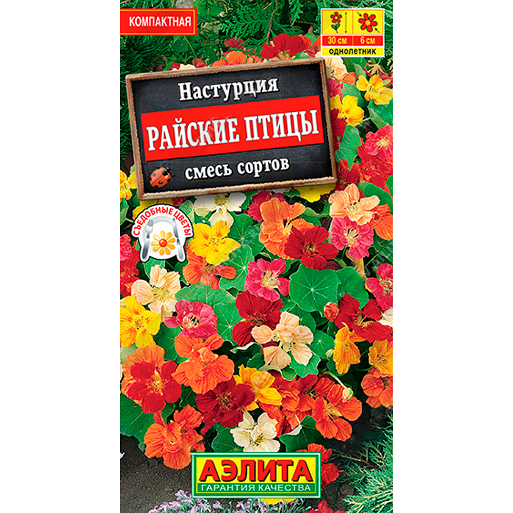 Компактная, кустовая настурция с ярким и обильным цветением. Важным достоинством смеси является то, что цветки (Ø 4-6 см) расположены выше листвы. Кусты полушаровидной формы, высотой 25-30 см. Растения тепло- и светолюбивые, неприхотливые в уходе. Хорошо смотрятся на клумбах, в рабатках и бордюрах. Подходят для контейнеров и балконных ящиков.
