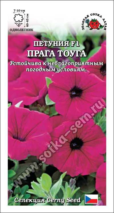Петунии серии «Прага» устойчивы к неблагоприятным погодным условиям, отлично растут не только в теплые солнечные дни, но дают хороший результат и при холодной дождливой погоде. Растение высотой 40-45 см, хорошо ветвится. Цветы крупные, воронковидные, красивого темно-пурпурно-красного цвета. Превосходное украшение клумб, рабаток, бордюров, отлично смотрится в вазонах, кашпо, балконных и оконных ящиках. Цветет обильно до глубоких заморозков.