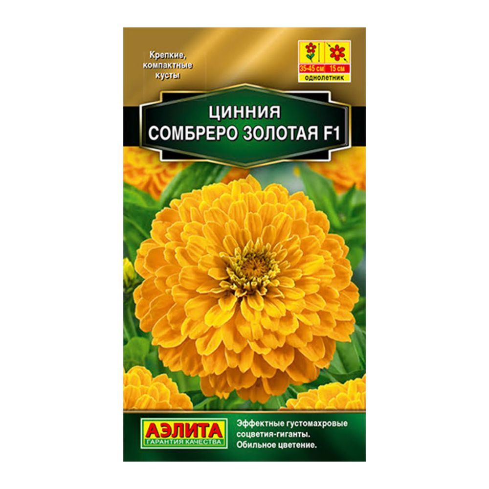 Цинния Сомбреро F1 золотистая – это сорт, который впечатляет своими крупными, до 15 см в диаметре, соцветиями, напоминающими георгины. Растения формируют крепкие, хорошо разветвленные кусты высотой 35-45 см, которые обильно и продолжительно цветут. Яркая окраска соцветий сохраняется до 40 дней, привлекая множество бабочек. Этот гибрид универсален: он прекрасно подходит для создания эффектных цветочных композиций на клумбах, украшения балконных и уличных контейнеров, а также для срезки. Циннии – теплолюбивые и быстрорастущие растения, которые относительно устойчивы к засухе. Для успешного роста им необходимы солнечные участки с хорошо дренированной почвой среднего плодородия и нейтральной кислотностью. В южных регионах возможен посев семян непосредственно в грунт.