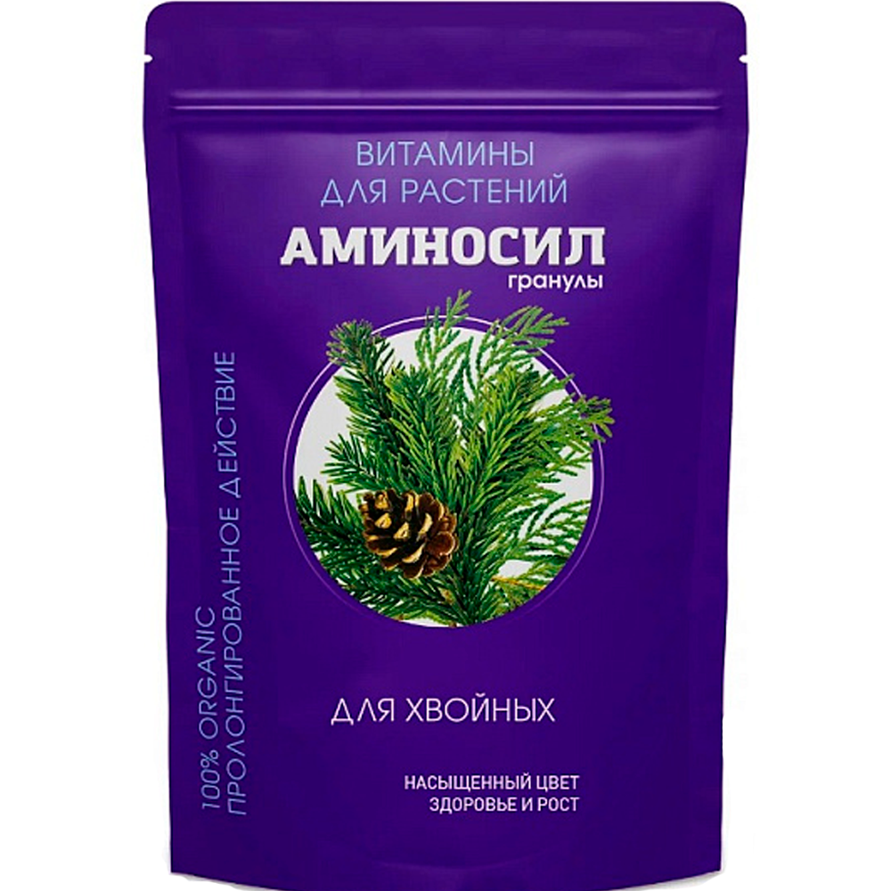 Витамины АМИНОСИЛ для хвойных в гранулах помогают обеспечить здоровый вид хвойных, увеличивают их зеленую массу и улучшают общее состояние. Продукт обладает специальным составом, который обеспечивает передачу питательных веществ прямо в корневую систему. Он разработан для использования в течение всего сезона и обеспечивает потребности хвойных растений на всех этапах жизни. Витамины АМИНОСИЛ для хвойных в гранулах: дают комплексное питание; улучшают обмен веществ за счет высокого содержания аминокислот; способствуют росту и развитию корневой системы, а также лучшей приживаемости после пересадки; усиливают вегетацию и защищают от пожелтения/побурения хвои; повышают устойчивость к вредным воздействиям окружающей среды и к погодным условиям; улучшают декоративность хвойных растений в условиях минимального ухода; имеют 100% органический состав - безопасны для людей и животных. Витамины для хвойных АМИНОСИЛ идеально подходят для ухода, питания и удобрения хвойных растений всех видов: сосна, ель, туя, можжевельник,