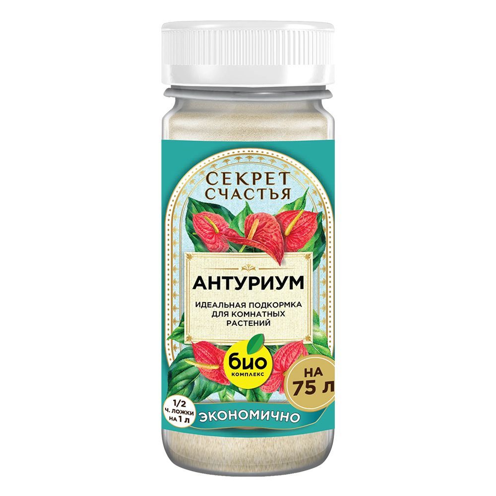 Удобрение "Секрет счастья" специально разработано для удовлетворения потребностей антуриумов в питательных веществах. Содержит оптимальное соотношение макро- и микроэлементов, витаминов и аминокислот для стимуляции цветения и роста здоровой листвы. Легко дозировать (1 г на 1 литр воды) и применять для полива (каждые 2 недели) или опрыскивания (ежемесячно). Помните о создании оптимальных условий: рыхлый, воздухопроницаемый грунт с хорошим дренажем и повышенная влажность воздуха. Хранить при температуре от 0 до 30°C в сухом месте.