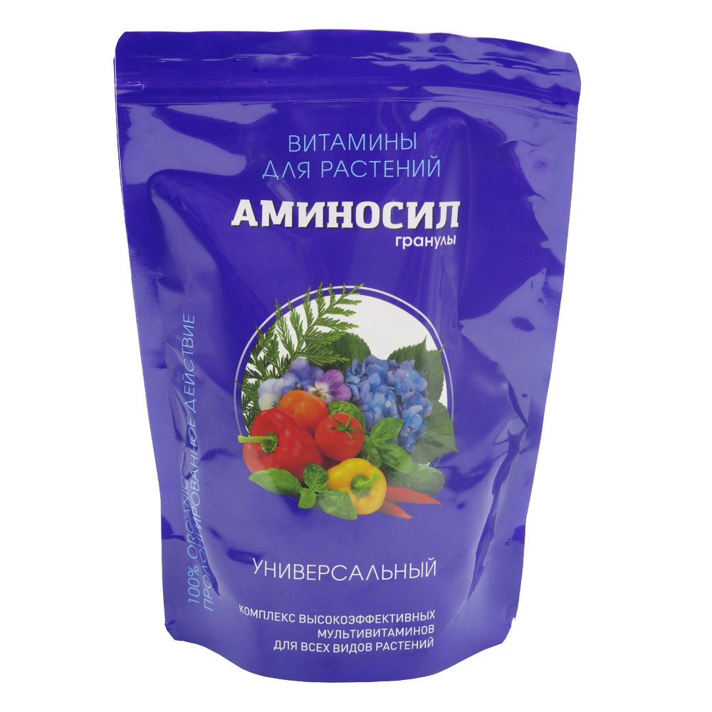 Витамины для растений универсальные Аминосил предназначены для выращивания овощных и ягодных культур (томатов и огурцов, картофеля и кабачков помидор и перцев, лука и капусты, клубники и земляники ) однолетних и многолетних цветов (роз и пионов, хризантем и гортензий, петунии и орхидеи, комнатные и садовые цветы) газонных трав, плодовых и декоративных деревьев. Аминосил гранулы содержат комплекс из питательных веществ, макро- и микроэлементов, которые снабжают растения всем необходимым для хорошего здоровья и роста. Он обеспечивает их эффективной подкормкой, благодаря чему увеличивается урожайность и качество плодов. Удобрение предназначено для использования на рассаде, цветах, садовых растениях, овощах и картофеле. Оно подойдет для всех почв и независимо от типа. Подкормка может использоваться в любое время года, в любом количестве и с любым типом воды. Он гарантирует здоровое развитие растений, помогает им поддерживать оптимальную температуру, развиваться мощной корневой системой и сохранять высокую продукт