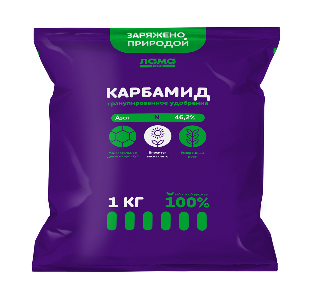 Карбамид от фирмы "Лама Торф" - это высококачественное удобрение, которое отличается от других мочевинных удобрений повышенной прочностью гранул, пониженной слеживаемостью и влагопоглощением. Это обеспечивает его эффективное действие в течение всего вегетативного периода растений. Карбамид медленно растворяется в почве, что позволяет обеспечить растения азотным питанием на длительный период. Он рекомендуется для основного внесения в почву под все полевые и овощные культуры, а также как подкормка в раннюю весну и в период вегетации растений.