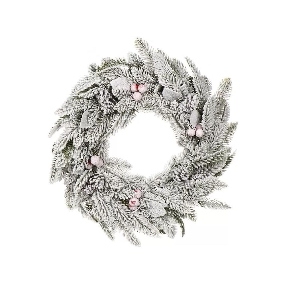 Венок рождественский 30 см, с ягодами, заснеженный, SYHHA-0823189