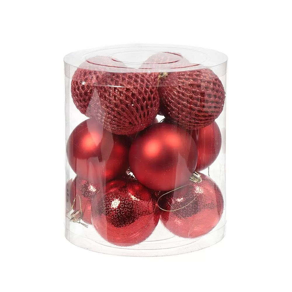 Елочный шар 12 шт, красный, 8 см, пластик, 3 вида, SY18ST-110