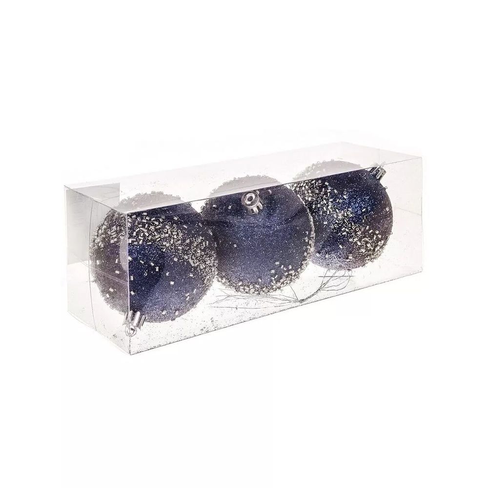 Елочный шар 3 шт, темно-синий, 8 см, пластик, SYQB-0120122