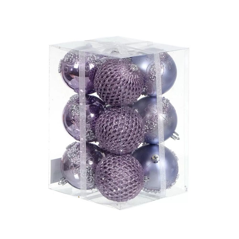 Елочный шар 12 шт, лавандовый, 8 см, пластик, SYQB-0121265