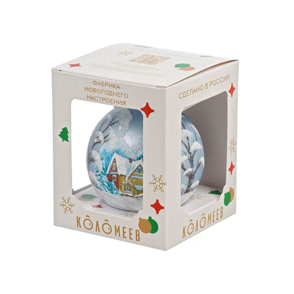 Елочный шар Домик в лесу, 10 см, стекло, КУ-100-224142